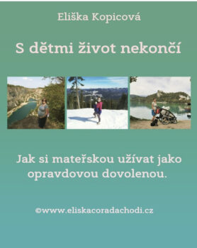 Když jsem v roce 2019 čekala své první miminko, nevěděla jsem o mateřství nic. Přede mnou se rýsovalo jedno velké neznámo. Neměla jsem kolem sebe nikoho s malými dětmi a v širokém okolí jsem neznala nikoho, kdo by s dětmi žil tak, jak bych si představovala. Naplno, radostně, aktivně. A z tohoto okolí jsem slyšela jen: „Počkej, s dětmi už nebudeš moci takhle výletovat.“ „Děti potřebují hrozně moc věcí, to už budeš muset všude jen autem.“ „Tohle se s dětmi nedělá“. Přišlo mi to jako nesmysl. Snažila jsem se oponovat, ale blahosklonné úsměvy naznačující „Však uvidíš“ mě usazovaly zpátky na zem. Odmítla jsem sedět zoufalá doma, chtěla jsem ven, chtěla jsem na vzduch, chtěla jsem do hor, chtěla jsem žít. Navzdory tomu, že mám malinké děti a právě proto, že mám malinké děti. Zažehla jsem v sobě touhu ukázat jim svět v celé své kráse. Ukázat jim, jak báječně umí slunce svítit, jak voní tráva, jak chutná vlastní vypěstované rajče, jak vypadá svět z vrcholků hor. Ukázat jim, jak barevný, šťavnatý a chutný může život být. A tímhle procesem, od zoufalé a nic netušící holky s miminkem v náručí po sebevědomou a spokojenou mámu dvou dětí, vás provedu ve svém e-booku S dětmi život nekončí – jak si z mateřské udělat opravdovou dovolenou.