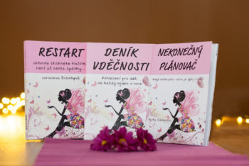 RESTARTOVACÍ BALÍČEK - kniha RESTART + dva barevné zápisníčky - DENÍK VDĚČNOSTI a mini diář pro romantické duše NEKONEČNÝ PLÁNOVAČ